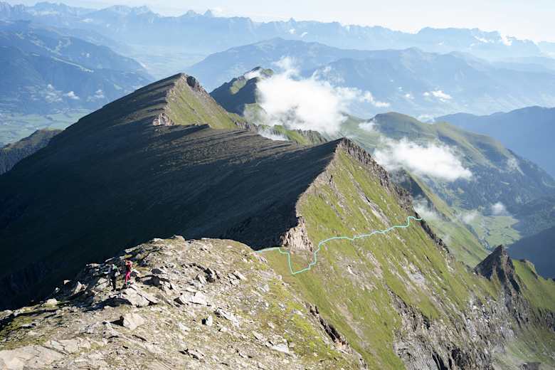 Ab der Scharte folgt die Route im wesentlichen dem Kammverlauf. Foto: Matthias Knaus