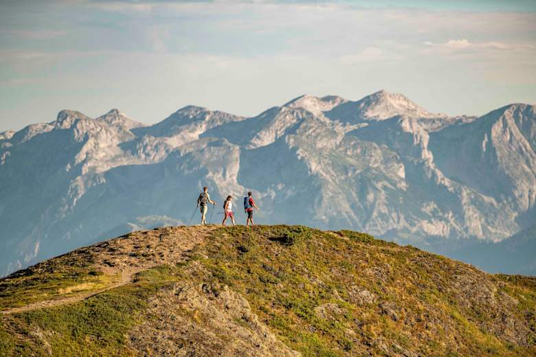 Aussichtsreiche Bergwanderung hoch über Flachau in Salzburg. Dank Seilbahnunterstützung beginnt man die Wanderung bereits oberhalb der Baumgrenze und genießt von Beginn an schöne Aussichten.