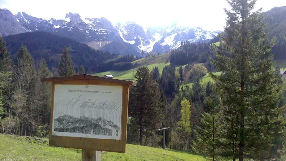 Eine Infotafel erklärt die Gipfel des Gosaukamms. Foto: Sylvia Schober, Tourismusverband Annaberg-Lungötz