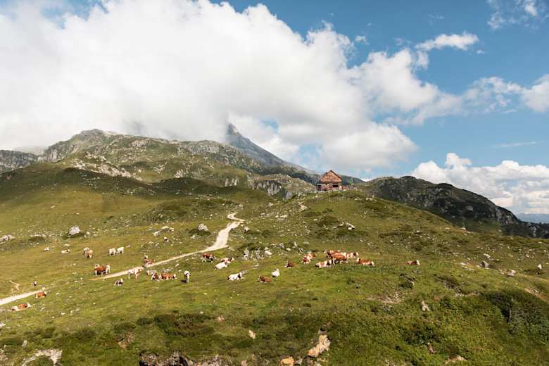 Diese einfache Bergwanderung führt über das Haselloch und den Tauernhöhenweg zum Alpenvereinshaus Franz-Fischer-Hütte (2.020 m). Empfehlenswerte Bergtour mit Ausblick auf die umliegende Gipfelkette der Radstädter Tauern in Salzburg.