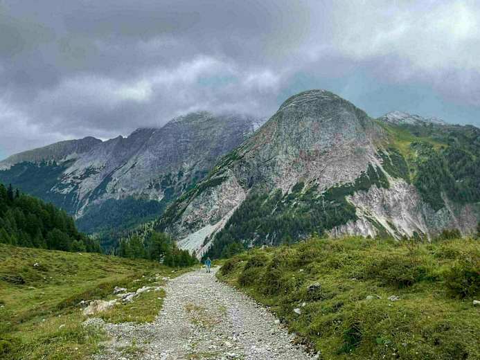 Start dieser Hüttenzustiegstour ist auf der Königalm. Von der Königalm marschiert man zunächst in Richtung Haselloch. Von dort geht es weiter auf dem Tauernhöhenweg (Nr. 702).
