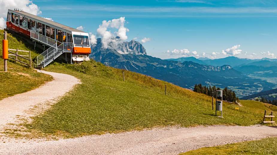 Von Kufstein mit dem Kaiserlift auf das Brentenjoch (zu Fuß bis zur Talstation ca. 45 min). Auf den Spuren des Adlerwegs zur Kaindlhütte und weiter über die Walleralm geht es bis zum Hintersteinersee. Von hier geht es mit dem Transfer (Taxi) zum Hotel nach Ellmau.