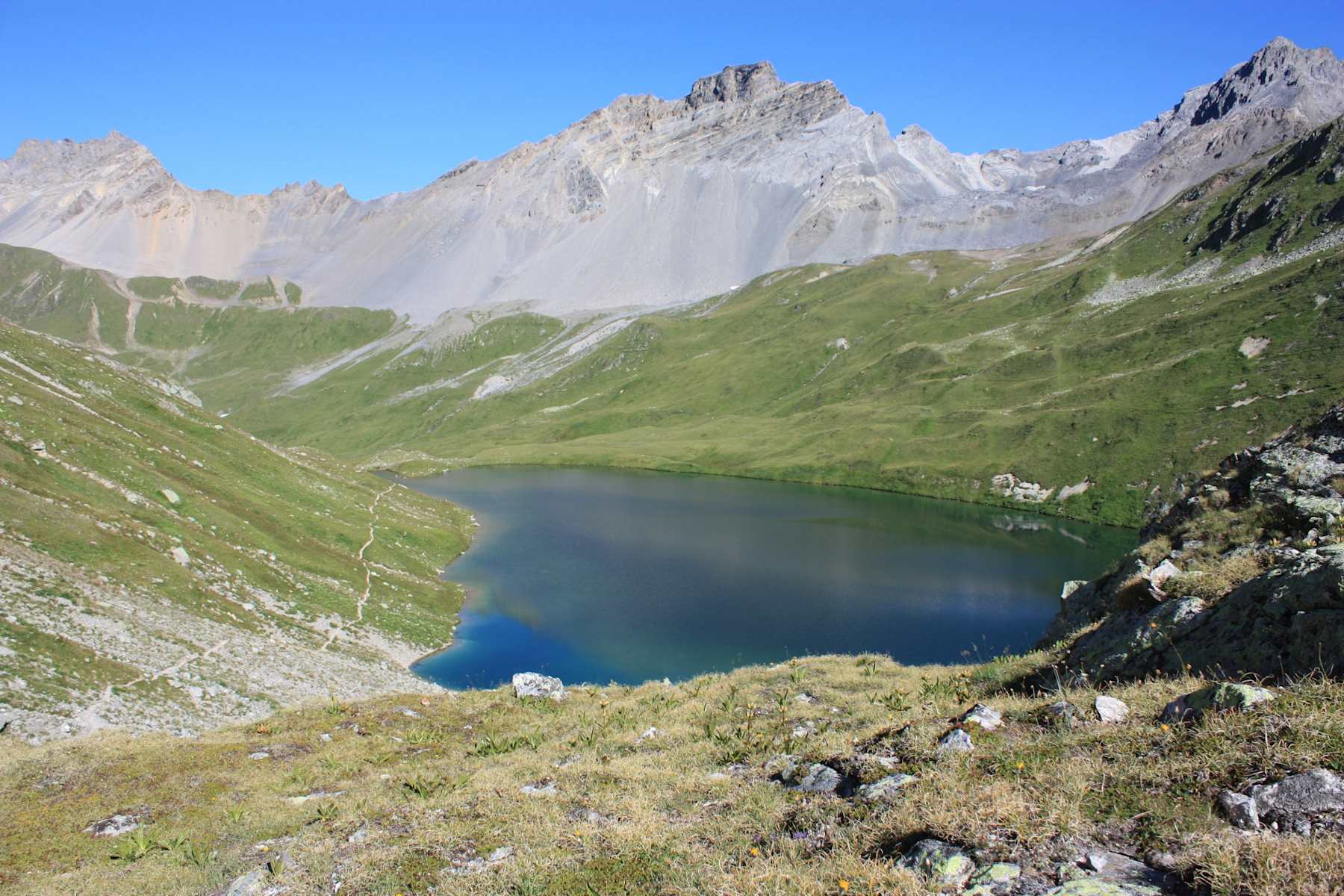 Der Parc Ela Trek führt in 17 Tagesetappen rund um den Naturpark Parc Ela mitten in Graubünden in der Schweiz. Auf der 13. Etappe kommt man an den wunderschönen Lais da Ravais-ch vorbei, ehe es weiter geht bis ins Walser Hochtal Sertig.