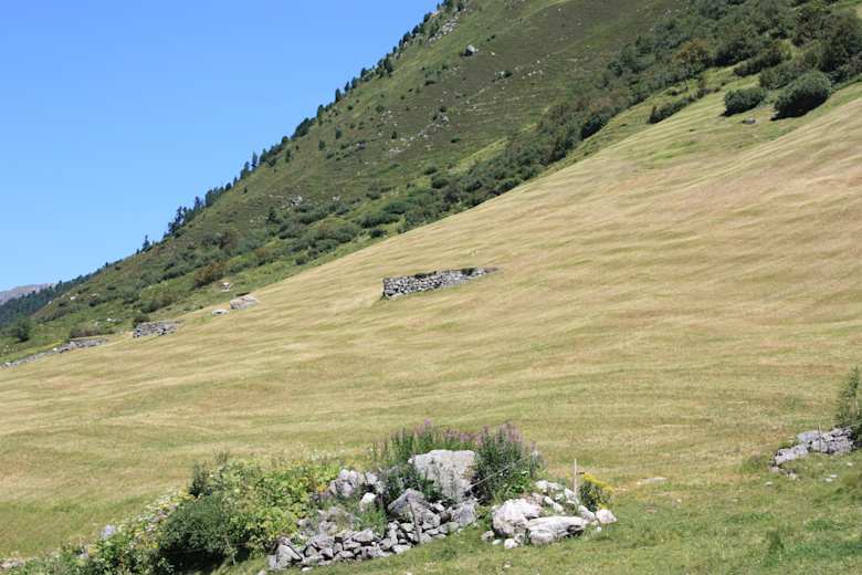 Lesestein-Trockenmauern zur Pflege der Wiesen und Weiden Foto: Irene Schuler, Parc Ela Trek