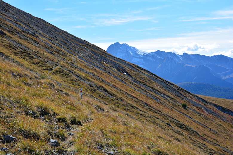 Abstieg zur Jenisberger Alp unterhalb der Muchetta Foto: Tanja Pfamatter, Parc Ela Trek