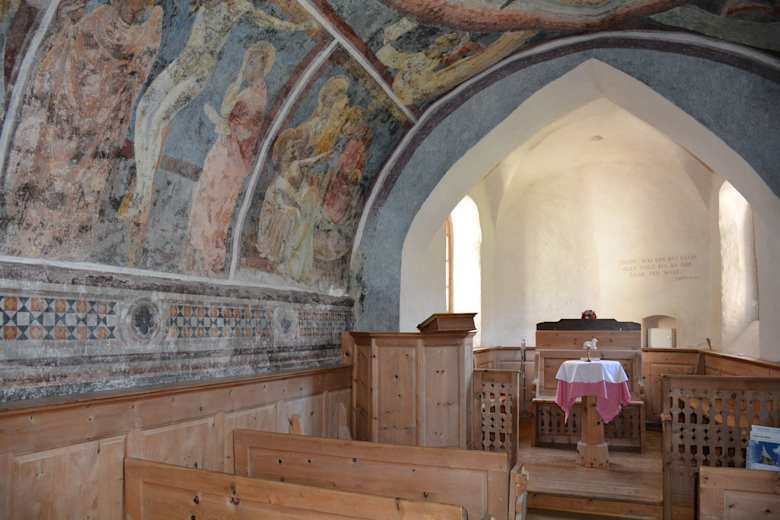Kirche Stugl mit hervorragender gotischer Wandmalerei der Giotto-Schule (1360/70) Foto: Tanja Pfamatter, Parc Ela Trek