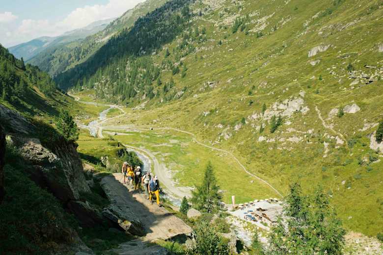 Den Pilgerweg entlang geht es zurück Richtung Talschluss. Im Gegensatz zum Vortag hält man sich nun rechts und steigt ab der Kehreralm Richtung Birnlücke auf. Über den breiten Talboden und einige spitze Wegkehren erreicht man das Etappenziel, die Birnlückenhütte auf 2.441 Metern.
