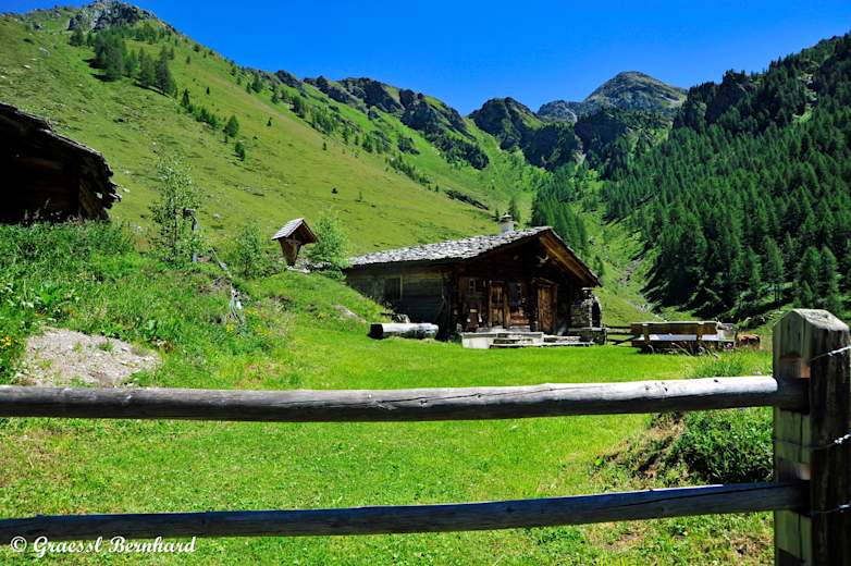Charakteristisch, die Almhütten am hinteren Ende des Hochtales. Foto: Bernhard Graessl, Hohe Tauern - die Nationalpark-Region in Kärnten Tourismus GmbH
