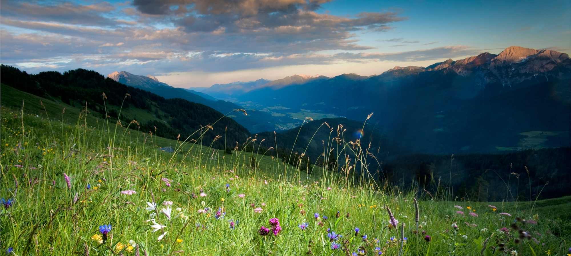 Hauptblütezeit Almwiese Mussen ist Juni/Juli. Im Naturschutzgebiet findet man die größte alpine Pflanzenvielfalt Europas - mehr als 500 Pflanzenarten, 280 höhere Planzen, Orchideen- und Lilienwiesen.