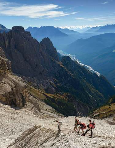 Gut markiert führt der Steig durch die Latschenfelder entlang der Bergsturzkante bis kurz vor das Gipfelhaus, wo man wieder auf den Weg Nr. 291 trifft.