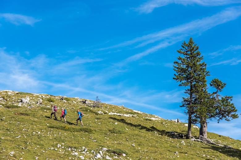 Ab dem 10er folgt man dem schmalen Steig Nr. 294 Richtung Westen zu einem kleinen Sattel. Hier steigt man für wenige Höhenmeter in sogenannten Bärengraben ab.