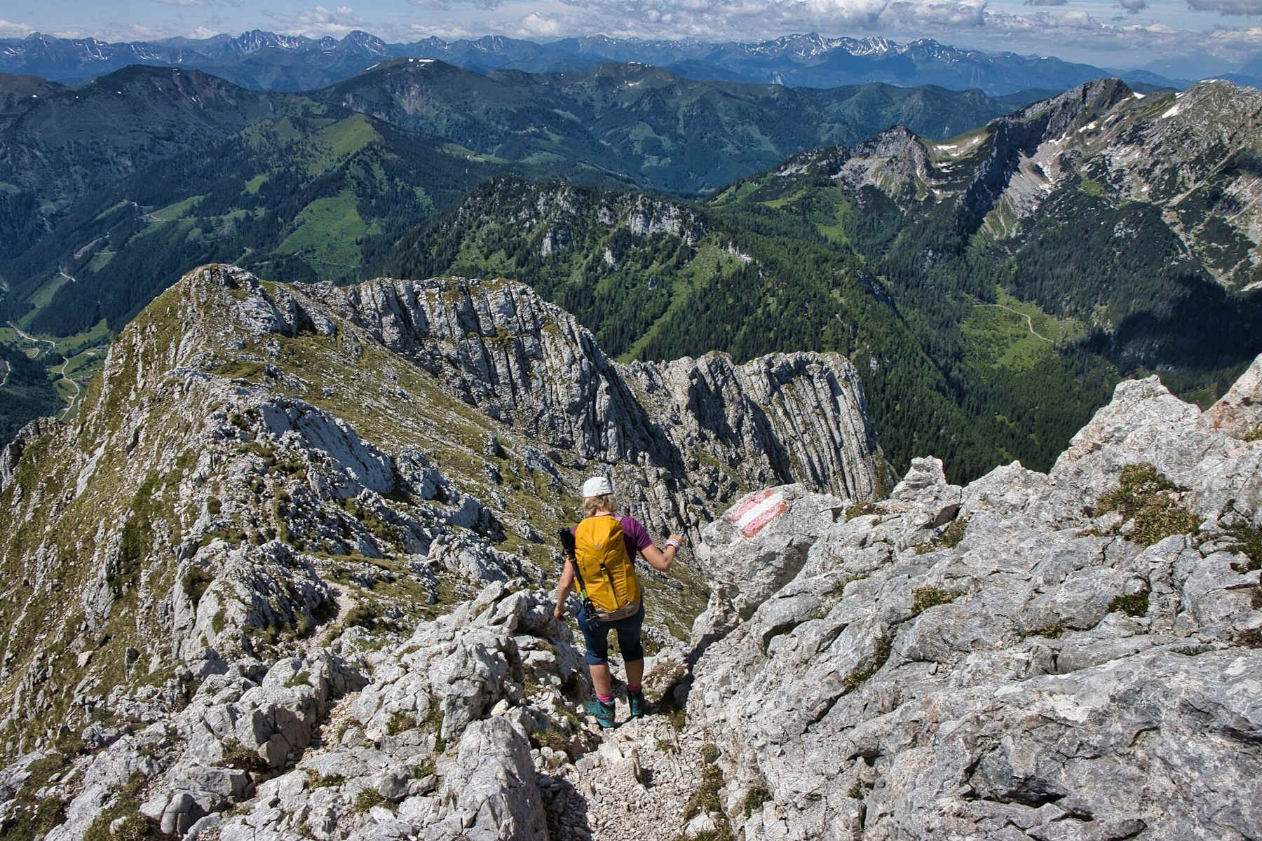 Der Abstieg vom Gipfel des Lugauer führt einen breiten Felsgrat entlang. Foto: Weges OG, Steiermark Tourismus