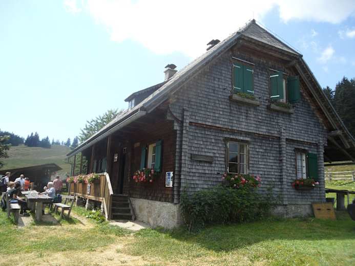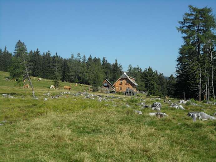 Gleich sieben Almhütten können auf dieser Wanderung auf der Hirschegger Alm in der Steiermark besucht werden. Ausgangspunkt ist die Knödlhütte, die vom Packsattel aus zu erreichen ist.