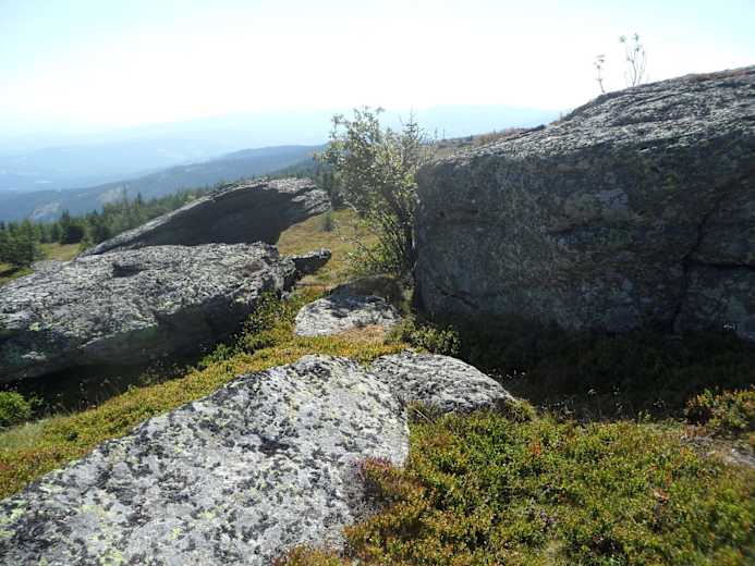 Wir bleiben auf dem Weg Nr. 505 und gehen Richtung Salzstiegl. Der Weg steigt hier mäßig an, wir werden aber von einem sagenhaften Almpanorama begleitet und sehen entlang des Weges imposante Steinöfen, die sagenhafte Namen wie „die 7 Fuhren“ oder „Hirschegger Goldloch“ tragen. Wir erreichen nach den Gesteinsformationen eine Abzweigung nach rechts. Wir nehmen diesen Weg Nr. 45, der uns zur Saureishütte bringt. Er verläuft leicht bergab und wir gehen über eine schöne Almweide in einen leichten Kessel hinunter. Von der Abzweigung bis zur Saureishütte sind es etwas mehr als 2 km.
