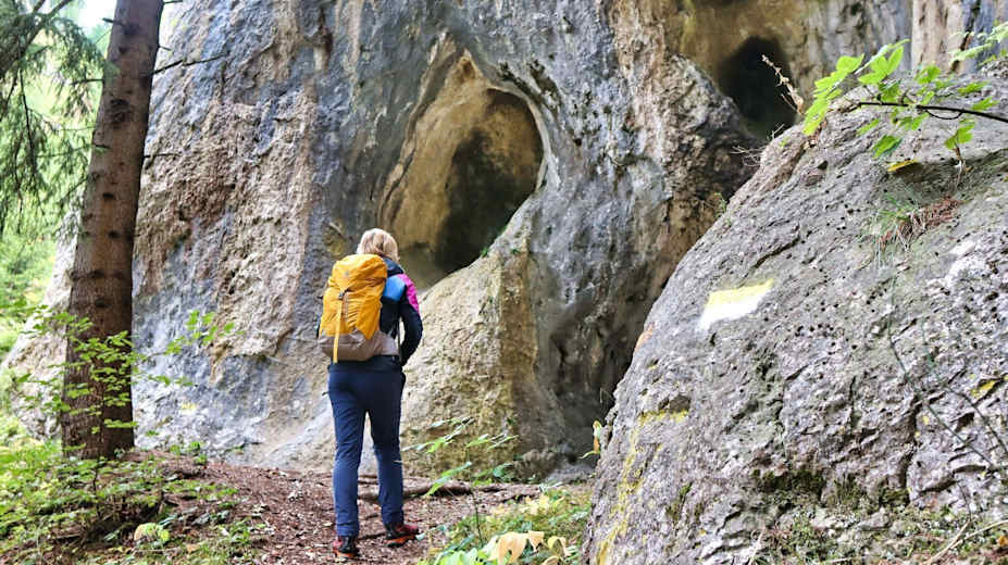 Styrian Iron Trail - Etappe 2 - Felsen mit Grotte Foto: Fa. WEGES OG im Auftrag der Abenteuer- und Sportregion ERZBERG LEOBEN
