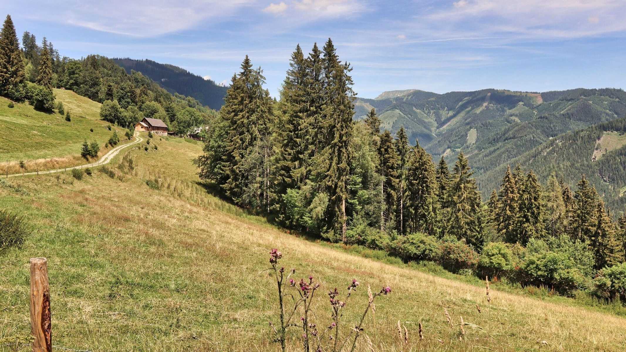 Gemütlich bergauf wandern wir über die Alm bis zu einem Überstieg, ab dem wir durch den Wald und an einem Bach vorbei bergauf gehen. An einer Forststraße angekommen halten wir uns links, erreichen die Weideflächen der Mellingalm und kurz darauf die bewirtschaftete Mellingalm-Hütte. Direkt an der Hütte vorbei geht es links leicht bergauf und in Folge über eine Forststraße bergab bis wir die Ortstafel Melling passieren und nun das letzte Wegstück leicht bergab bis ins Zentrum von Wald am Schoberpass, 841 m, wandern.