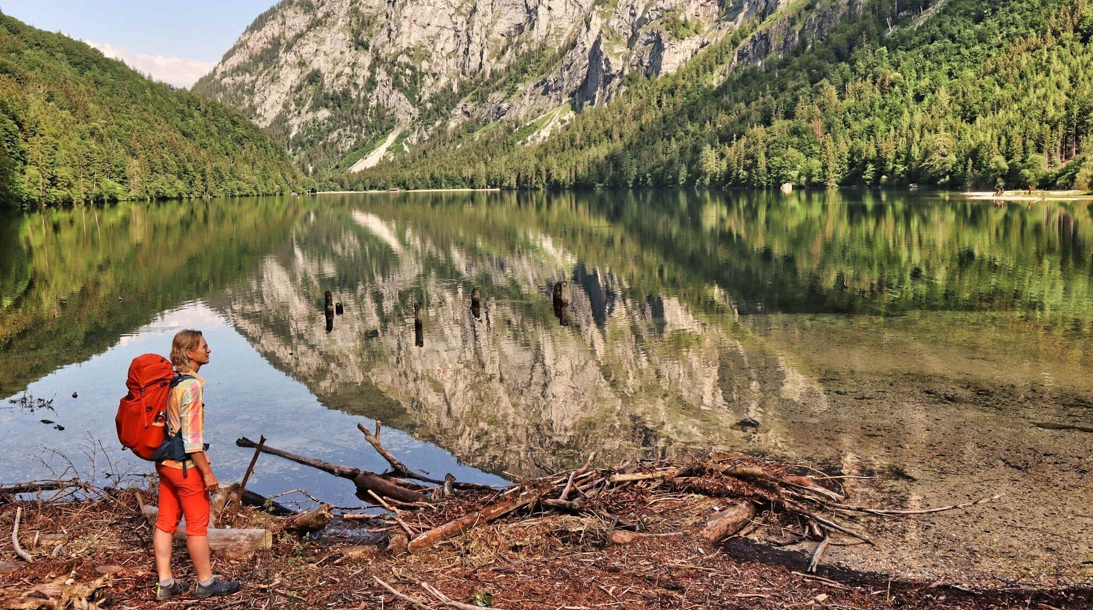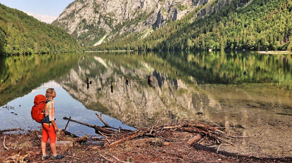 Vom Bergmannsplatz in Eisenerz, 736 m, gehen wir auf der Geyereggstraße zur Bundesstraße und dort nach links, bis zu einem großen Parkplatz auf der rechten Seite. Weiter geht es in Richtung „Urlaubkreuz / Pfaffenstein“ auf der Asphaltstraße leicht bergauf, dann auf Forststraßen und Wanderwegen durch den Wald hinunter zum Leopoldsteinersee, 628 m. Der kurze Abstecher zum See ist auf jeden Fall empfehlenswert.