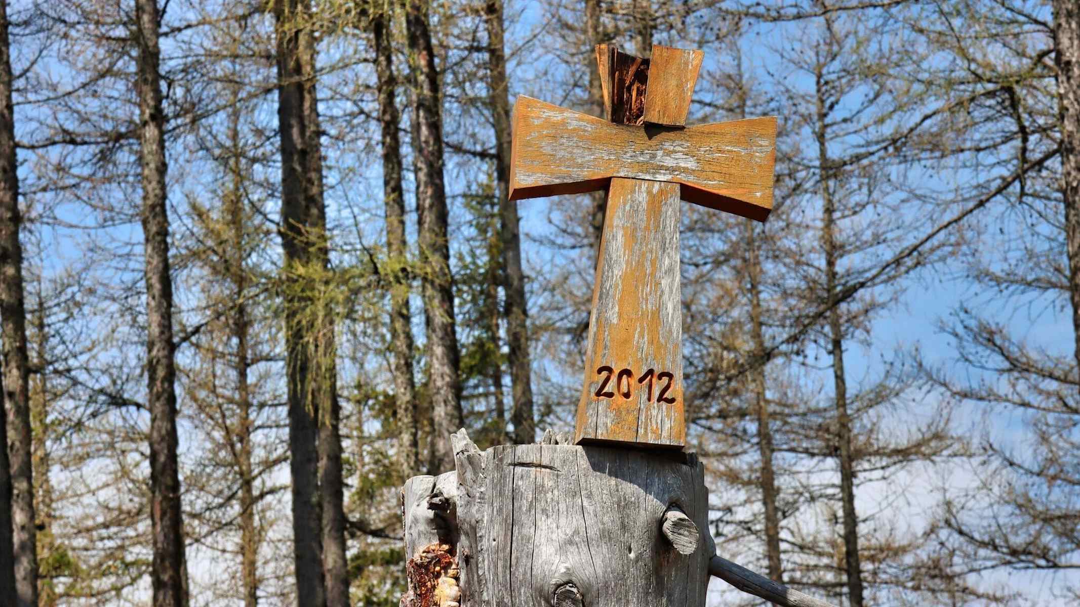 Nach der Infotafel beim Hunt (Förderwagen) wandern wir rechts bergauf bis zu einem Schranken und rechts weiter in den Waldweg. Bei der nächsten Kreuzung halten wir uns links und folgen den rot-weiß-roten Markierungen stetig bergauf, wobei wir einen großen Umkehrplatz und kurz darauf eine Forststraße passieren. Es geht kontinuierlich bergauf bis zur Wegkreuzung Himberger Eck. Nach einem steilen Gipfelanstieg erreichen wir den höchsten Punkt des Tages, das Himberger Eck, 1.345 m, wo linkerhand ein kleines Gipfelkreuz auf einem Baumstumpf und vor uns die Kulisse des Hochschwabgebietes zu sehen sind.