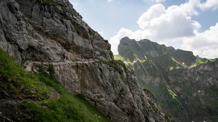 Der Kontrast zwischen den saftig grünen, blumenreichen Flyschbergen und den schroffen Felsmassiven des Hauptdolomits, lässt sich auf dem Übergang ins Oytal besonders gut veranschaulichen. Der nachfolgende Abstieg über das ausgedehnte Wildenfeld zur Käseralpe ist steil und lang, hier freut sich früher oder später jeder über gute Tourenstöcke. Von den lieblichen Alpweiden der Käseralpe am Fuße der Höfats geht es im Anschluss auf gut ausgebauten Wanderwegen über den herrlich erfrischenden Stuibenfall und die Untere Guten Alpe talauswärts. Vom Oytalhaus führen schattige Alleen bis hin zum Kühberg. Hier lassen sich auf den letzten, sonnigen Metern schon bald die ersten Dächer Oberstdorfs erblicken.