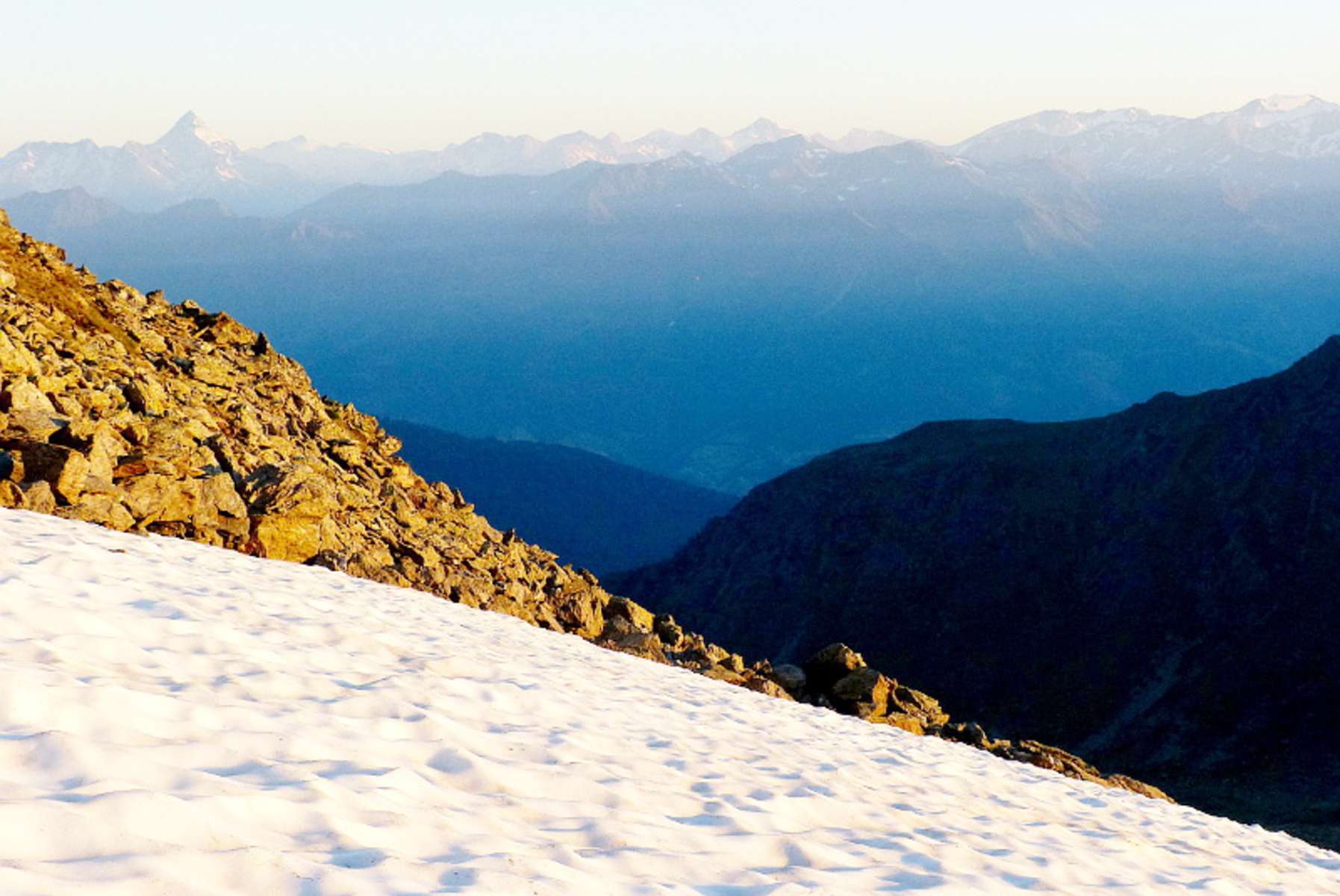 Nun steigt man am Kamm ab. Durch felsiges Gelände wandert man zum Schwarzwandkopf (2.683 m) und überschreitet diesen. Hier sind Trittsicherheit und Schwindelfreiheit gefragt.