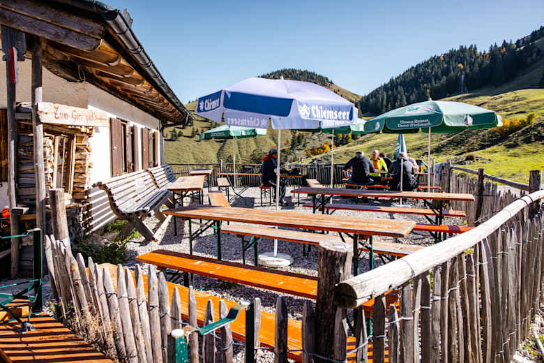 Alternativ kann man auch mit der Kampenwandseilbahn von Hohenaschau auf die Kampenwand fahren und in rund 30 min zu Gorialm absteigen.