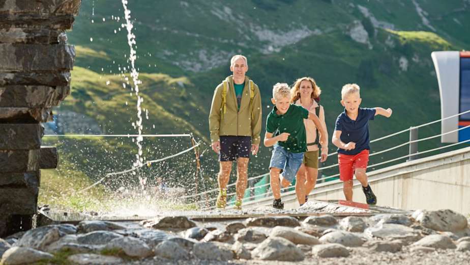 Spielen, lernen und entdecken – auf dem Erlebnisweg Burmiwasser von der Bergstation der Kanzelwandbahn zum Riezler Alpsee erleben Kinder das Element Wasser auf spielerische Weise. An zahlreichen Stationen mit Gumpen, Wasserrädern und Schleusen können sie nach Lust und Laune experimentieren und die Natur entdecken. Eine kurzweilige Wanderung im Kleinwalsertal für die ganze Familie.