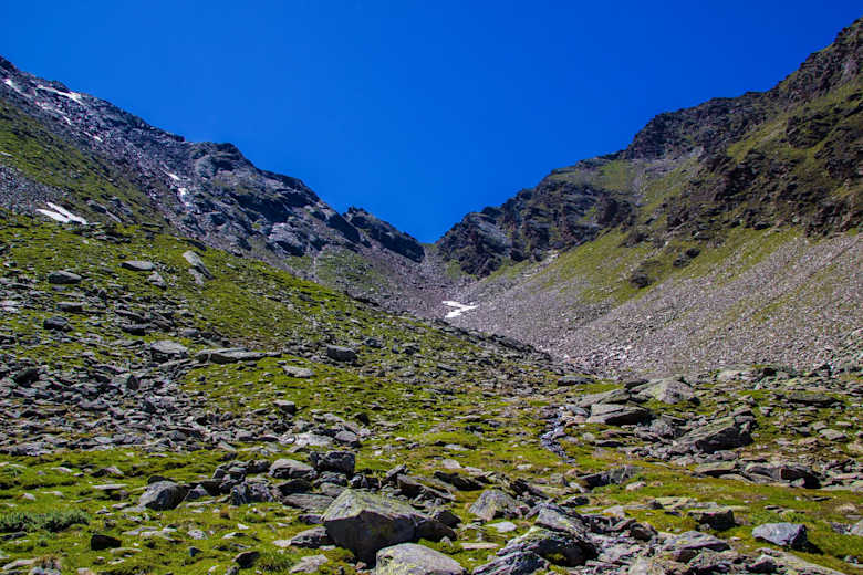 Der Anstieg zum Joch verläuft über gut markierte Pfade in ruhiger, hochalpiner Umgebung. Die letzten Meter hinauf zum Joch sind etwas steiler, eröffnen aber eine großartige Aussicht auf die umliegenden Gipfel.