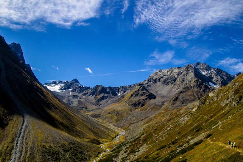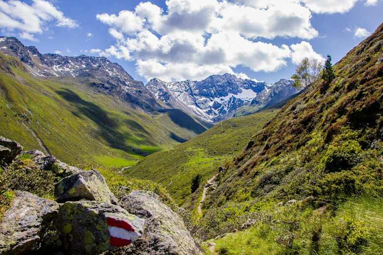 Der letzte Anstieg zum Westfalenhaus ist stetig, aber nie zu steil – und bietet eindrucksvolle Blicke auf das Längental und die Gletscherregionen rund um die Schöntalspitze. Am Westfalenhaus, idyllisch gelegen, wartet eine verdiente Einkehr.