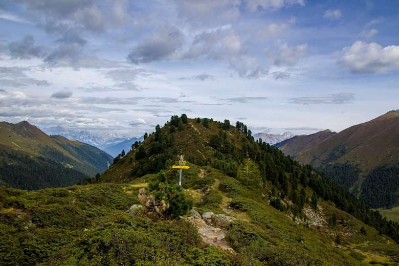 Am Übergang bietet sich ein beeindruckender Panoramablick auf die Stubaier Alpen und Kalkkögel.