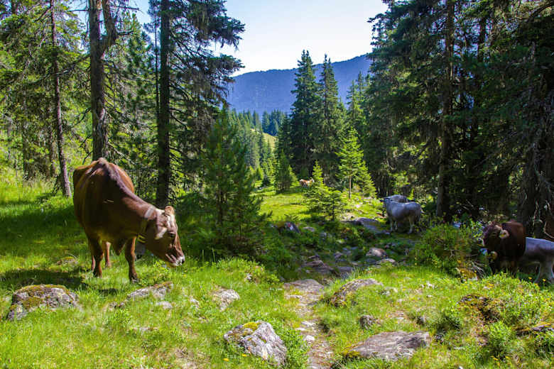 Kühe am Weg zur Almind Alm Foto: Potsdamer Hütte