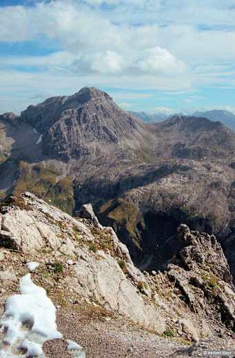Auf der Nordostseite der Braunarlspitze, einem der höchsten Gipfel des Lechquellengebirges. Foto: Herbert Mayr, Bergverlag Rother GmbH