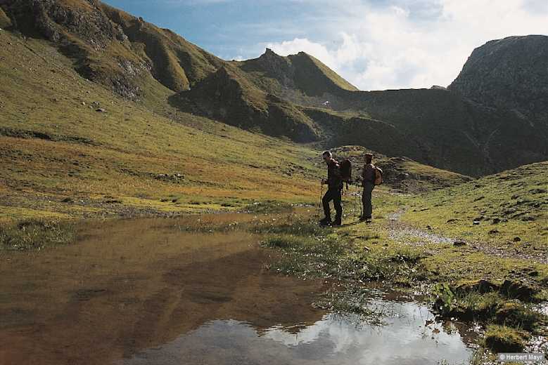 Die Wanne bei der Lägerzun-Jagdhütte, im Hintergrund der Hochberg. Foto: Herbert Mayr, Rother Bergverlag Bildergalerie (3)