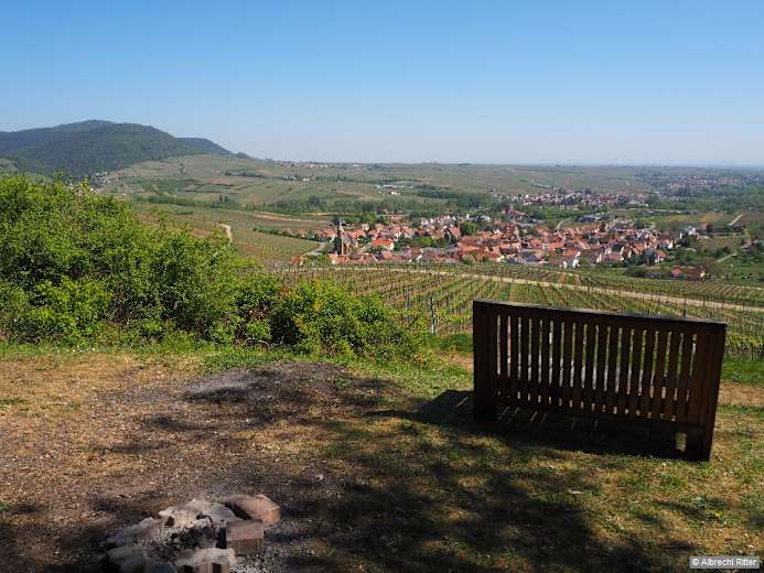 An Opas Bank genießen wir den weiten Blick in die Rheinebene. Foto: Albrecht Ritter, Bergverlag Rother GmbH