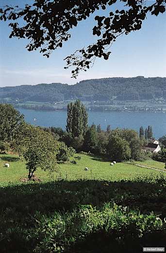 Wir kreuzen die Landstraße und passieren das Schulthais’sche Schlössle sowie das Schloss Kattenhorn mit individueller Kapelle. Hinweisschilder informieren über weitere alte Gebäude. Gleich unterhalb des Schlosses bietet sich eine kleine stille Unterseebucht mit Ausblick zur Schweizer Seite für eine einprägsame Tourenunterbrechung an.