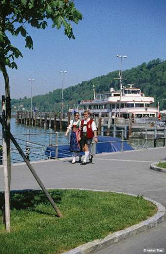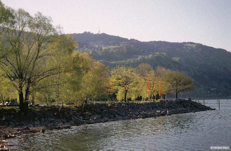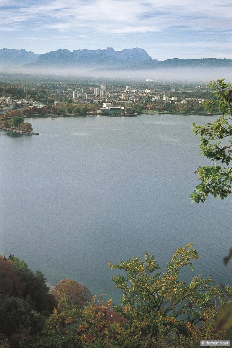 Das Prädikat „Bodensee-Aussichtswarte Nummer eins" gebührt ohne Zweifel dem berühmten Pfänder. Der außergewöhnliche Vierländerblick lässt einen nicht so schnell wieder los. Fast bis an den Horizont dehnt sich der blanke Spiegel des drittgrößten Binnengewässers Europas, des „Lacus Brigantinus". Uns zu Füßen: die Lindauer Insel, das Bregenzer Dächergewirr mit der Seebühne, das Rheindelta! Wälder, Täler, Hügel, Grasberge – Felszinnen scharen sich bis zum Tödi. Nach dem Motto „Wandern ab der Bergstation" begnügen wir uns mit dem Abstieg.