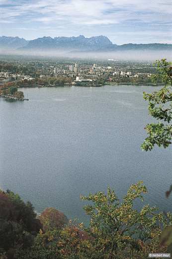 Tiefblick von Haggen auf den Bregenzer Seebusen, im Hintergrund die Appenzeller Berge. Foto: Herbert Mayr, Rother Bergverlag GmbH Bildergalerie (3)