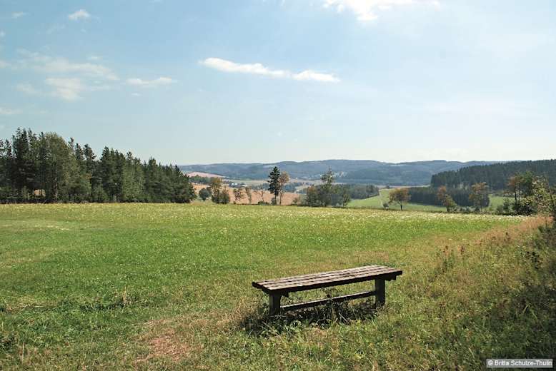 Von der Stadtmitte geht es zunächst am Stadtrand entlang, später über Wiesen hinauf zur Kreuztanne. Foto: Britta Schulze-Thulin, Bergverlag Rother GmbH