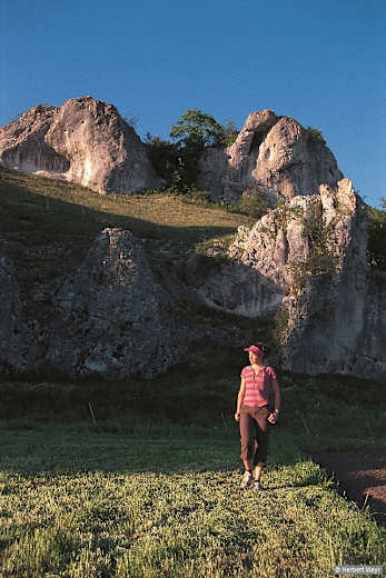 Unten im Tal wandern wir über die Brenzbrücke und auf dem Wirtschaftsweg flussaufwärts nach Eselsburg. In Richtung Sallenbüchle spazierend, wartet nach knapp 1 km die Spitzbubenhöhle, 515 m, in einem abgeschiedenen Seitental auf unseren Besuch – nicht zu verwechseln mit der südlich von Anhausen gelegenen Klemmerhöhle, die auf der topografischen Karte ebenfalls den Namen Spitzbubenhöhle trägt. Zurück auf dem Äußeren Talweg, einem Wirtschaftsweg, bummeln wir gemütlich brenzaufwärts nach Anhausen. In den Steilhängen über uns schlummern noch weitere versteckte Höhlen, wie bereits oben bei der Ruine Eselsburg. Auch auf der anderen Seite des Tals gäbe es so manche Natursehenswürdigkeit zu entdecken. Den Westhang des Buigen ziert zudem eine prächtige Wacholderheide. Vom ehemaligen Kloster bringt uns ein Fußgängerweg zurück nach Herbrechtingen.