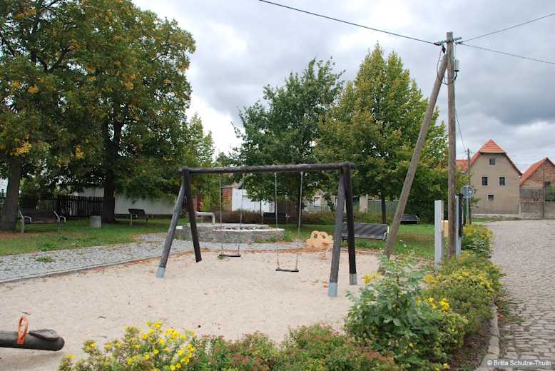 Wir halten uns schräg rechts, vorbei am Spielplatz von Schweßwitz. Foto: Britta Schulze-Thulin, Bergverlag Rother GmbH