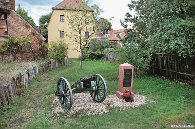 Gedenkstätte in Kaja an die napoleonische Schlacht bei Großgörschen 1813, dahinter das Marschall-Ney-Haus. Foto: Britta Schulze-Thulin, Bergverlag Rother GmbH