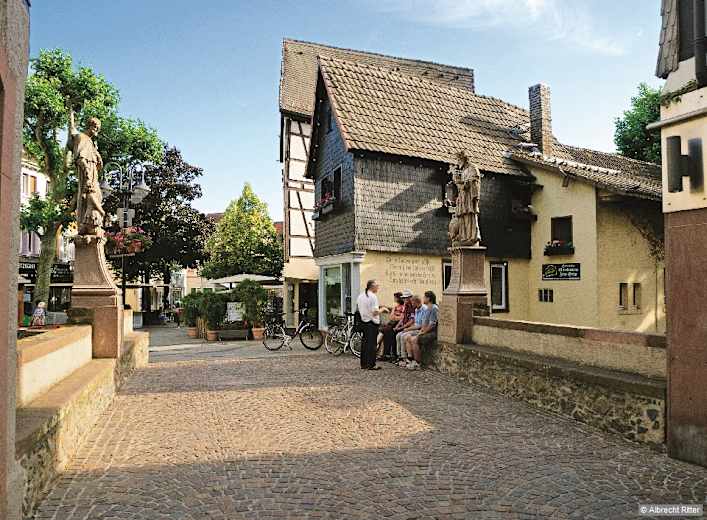 Der Treffpunkt Mittelbrücke in der Bensheimer Altstadt. Foto: Albrecht Ritter, Rother Bergverlag GmbH Bildergalerie (6)