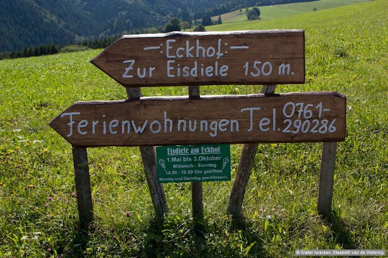 Vom Parkplatz neben dem Gemeindehaus in St. Ulrich sind es die Hauptstraße hinauf nur ein paar Schritte bis zum Gasthaus Rössle. Vor dem Gasthaus gehen wir rechts Richtung Kohlerhof über die Möhlinbrücke zur Klosterkirche hinauf, lassen Kirche und Friedhof links liegen und folgen der gelbe Raute auf steilem, aussichtsreichem Weg hinauf bis zur Verzweigung an der Winterberghütte. Dort biegen wir scharf links ab Richtung Berglusthaus, gehen erneut auf schönem Hangweg mit Blick ins Tal hinunter nach St. Ulrich und hinüber zum Gegenhang mit den Bauernhöfen und Wohnhäusern von Geiersnest, jetzt leicht abwärtslaufend. Wieder im Tal stoßen wir auf den Winterbergparkplatz und einen breiten Waldweg, dem wir nach rechts folgen. Nur 100 m weiter schwenken wir nach links in den Kohlwaldweg, gelangen auf breiter Spur aufwärts zu einem Picknickplatz auf der linken Seite und in Kehren bis zu einer einspurigen Asphaltstraße. Noch vor Betreten der Straße biegen wir scharf rechts auf einen weiteren Waldweg Richtung Wanderheim Berglusthaus. Stetig ansteigend, erreichen wir freies Wiesengelände und schließlich die Terrasse vor dem Berglusthaus. Auf Treppenstufen gelangen wir zu einem Sträßchen oberhalb der Berghütte, halten uns rechts und erreichen die Kreuzung auf der Eduardshöhe. Die ruhige Hochebene besticht mit Aussicht zum Schauinsland und zu den Windmühlen an der Holzschlägermatte.