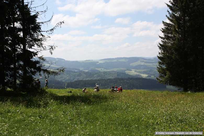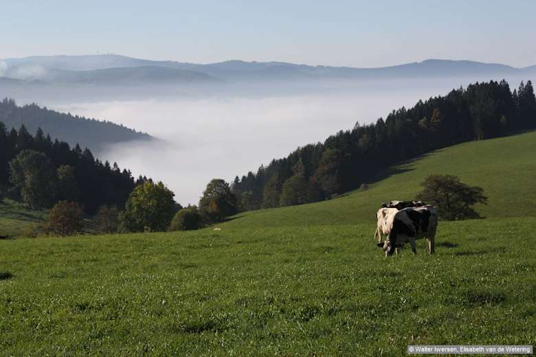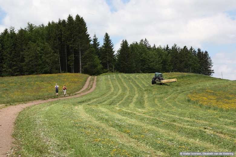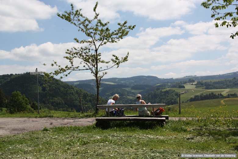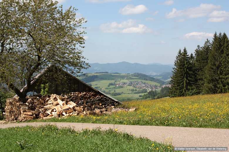 Viehweiden und von Löwenzahnblüten gelb gesprenkelte Wiesen im Wechsel mit schattigen Waldabschnitten, dazu das Schwarzwaldpanorama mit Thurner, Feldberg und Schauinsland aus ständig wechselnden Perspektiven. Das macht den Reiz dieser Wanderung aus. Die Doppelturmspitzen der beiden Klosterkirchen von St. Märgen und von St. Peter sind unsere Orientierungspunkte in der Landschaft.