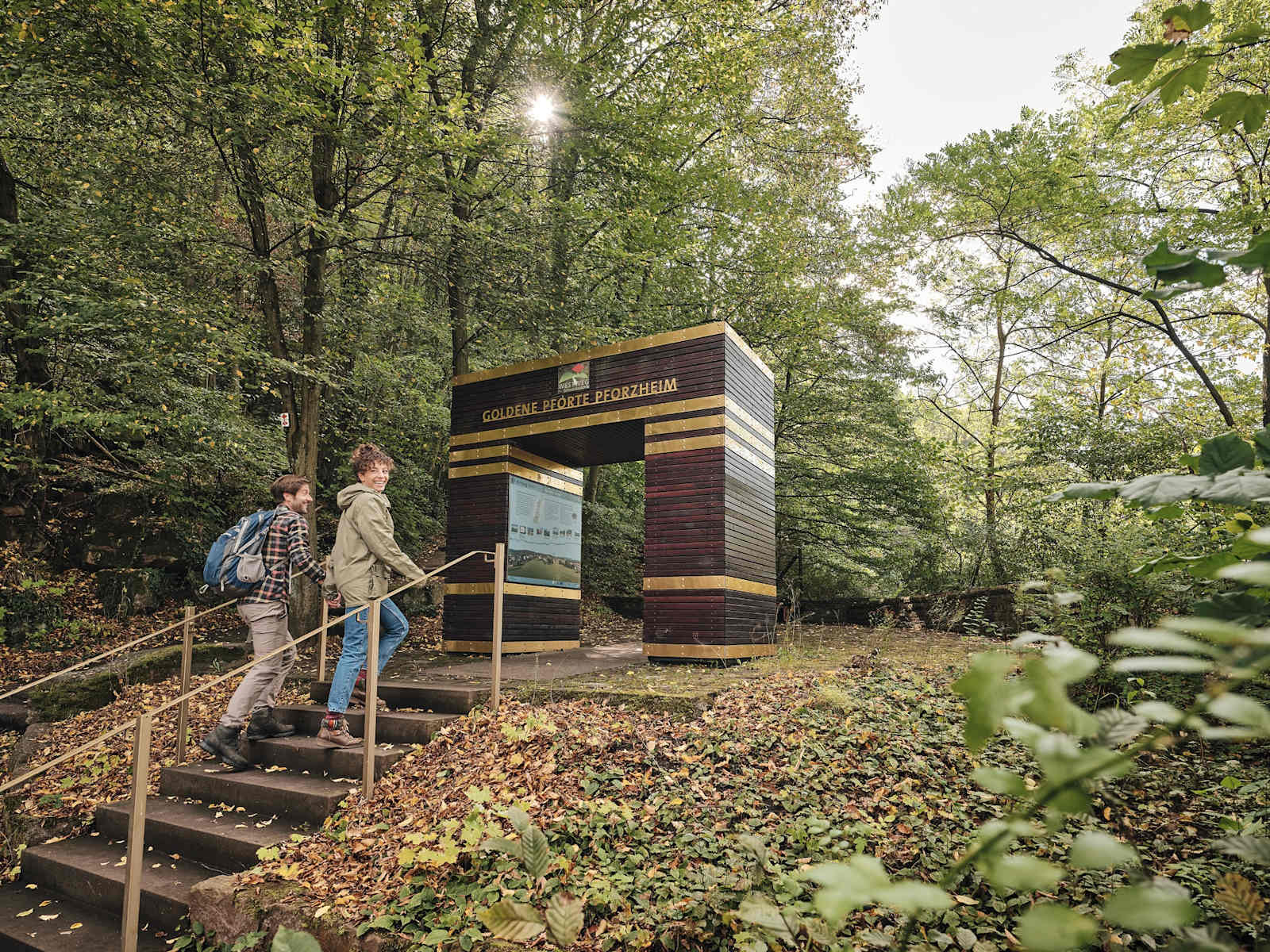 Diese abwechslungsreiche Wanderung führt durch den nördlichen Schwarzwald in Baden-Württemberg – von der Stadt Pforzheim über historische Orte und aussichtsreiche Höhen bis zum Kurort Dobel. Als erste Etappe der Ostvariante des bekannten Westwegs des Schwarzwaldvereins verbindet sie Stadtnähe mit waldreicher Einsamkeit. Anspruchsvoll, mit einigen steilen An- und Abstiegen, ist sie gut geeignet für geübte Wanderer mit Kondition. Die Tour beginnt am Kupferhammer am südlichen Stadtrand von Pforzheim, wo sich die drei großen Schwarzwald-Fernwege teilen, und endet auf dem Hochplateau in Dobel.