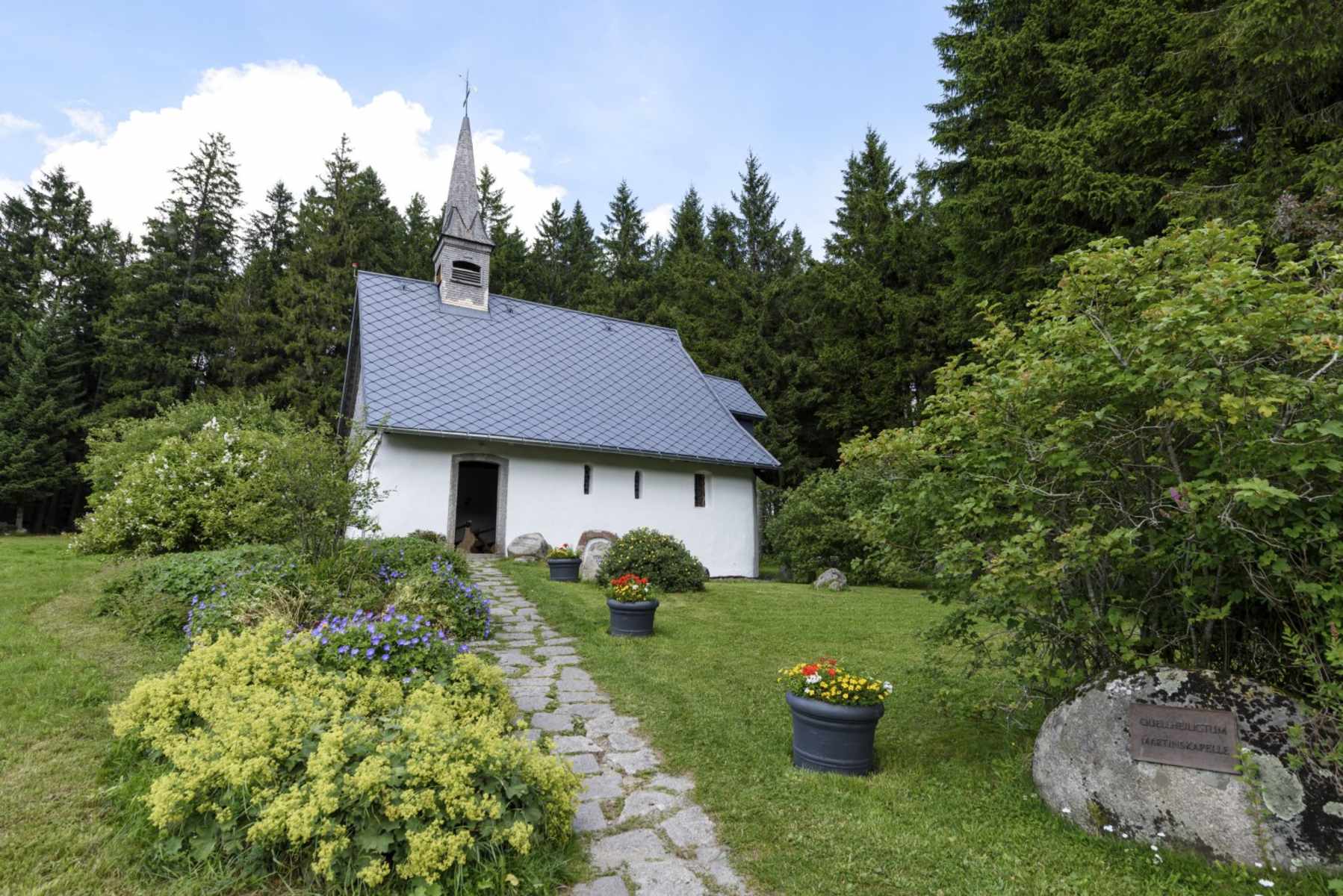 Hinter der Weißenbacher Höhe wechselt der Weg durch die kleine Senke des Elztals hinüber zum Hauptkamm zwischen Donau und Rhein. Vorbei an der kleinen Elzquelle wird an der Martinskapelle eine Quelle von geradezu historischer Bedeutung erreicht. Hier entspringt unter einem Felsen die Breg, die sich bei Donaueschingen mit der Brigach zur Donau vereinigt. Der kurze Abstecher zur Bregquelle gehört zum Pflichtprogramm eines jeden Westweg-Wanderers!
