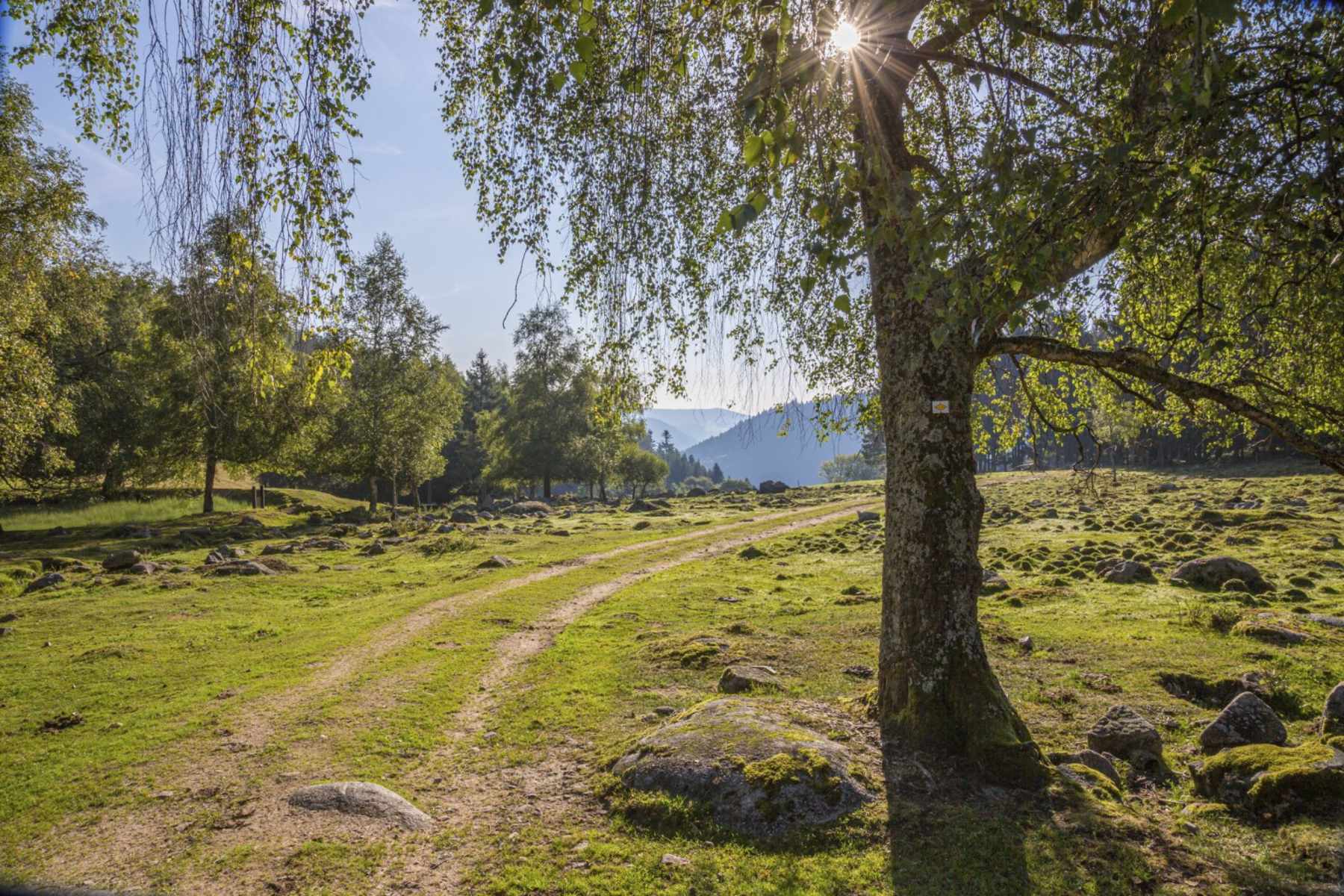 An der Wilhelmshöhe durchschreitet der Wanderer das mächtige Portal aus Findlingen. Vorbei am Wolfbauernhof mit dem Longinuskreuz führt der Westweg zum Blindensee. Auf dem Bohlenpfad durch das Hochmoor ist es am frühen Morgen besonders schön, wenn im ersten Sonnenlicht noch die Tautropfen der Nacht im Wollgras und in den Zweigen der Krüppelkiefern hängen.