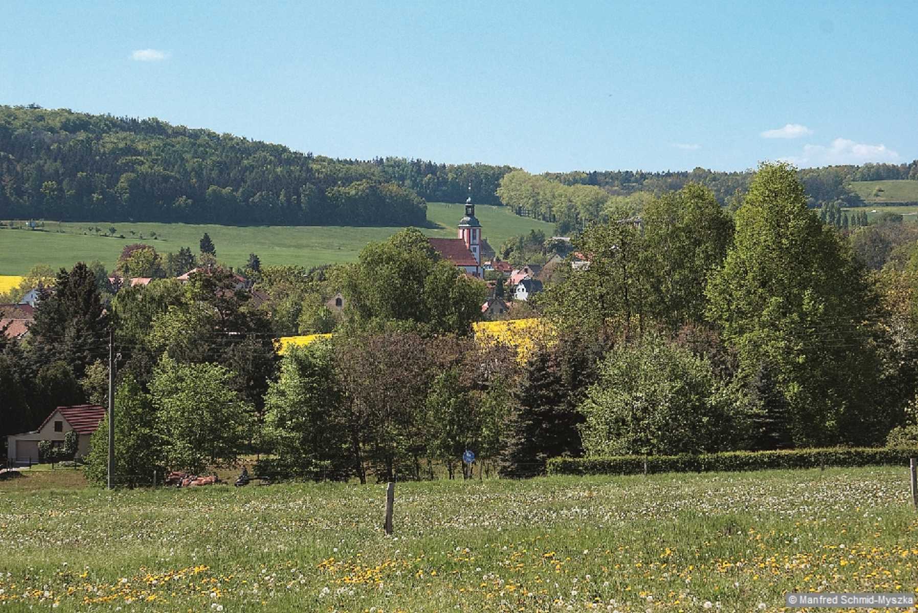In Spitzkunnersdorf wechselt die Markierung schon wieder, für den Rest unserer Wanderung folgen wir einer Grünstrich-Markierung. Wir laufen auf der Dorfstraße abwärts. Dabei kommen wir an mehreren malerisch gelegenen Umgebindehäusern vorbei. Nach ungefähr 900 m weist uns die Markierung nach links. Am Ortsende biegen wir nach links ab und steigen zum Fuß des Hofeberg hinauf. Wir umrunden den Berg und kommen zu einer wenig befahrenen Landstraße, auf der wir wenige Schritte nach rechts gehen. An einem Parkplatz biegen wir links ab und wandern nordwestwärts über die Felder. An der zweiten Hecke biegen wir rechts ab und steigen zum Waldrand am Fuß des Spitzberg hinauf. Nach zehn Minuten stehen wir an der Spitzbergbaude, die unmittelbar unter den über eine Treppenanlage leicht zu besteigenden Gipfelklippen steht. Von oben schweift der Blick weit über die südliche Oberlausitz, das Isergebirge und die angrenzenden nordböhmischen Berge. Bei guten Bedingungen kann man sogar bis zum Riesengebirge schauen. Im Abstieg folgen wir weiter der Grünstrich-Markierung, die uns zuerst zum Fuß der Klippen, wo wir Kletterern zusehen können, und dann über Wiesen und an einer Sommerrodelbahn vorbei zum Bahnhof in Oberoderwitz führt. Mit dem Bus oder der Regionalbahn fahren wir zu unserem Ausgangspunkt zurück.