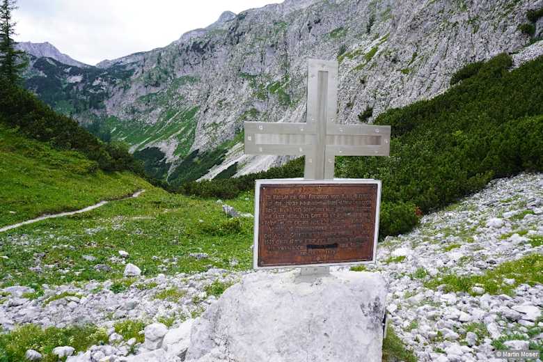 Auf dem Weg von der Voisthaler Hütte hinab nach Seewiesen kommen wir am Franzosenkreuz vorbei. Foto: Martin Moser, Bergverlag Rother GmbH