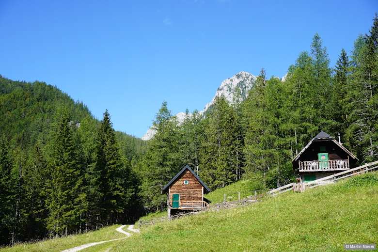 Die Hackenalm am Wegrand wird vor Ort auch als Hakenalm bezeichnet. Foto: Martin Moser, Bergverlag Rother GmbH