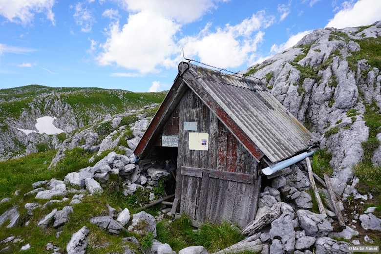 Auf dem Weg vom Höchstein in Richtung Kampl, über den Zlackensattel, kommen wir an einer Unterstandstütte vorbei. Foto: Martin Moser, Bergverlag Rother GmbH Bildergalerie (8)